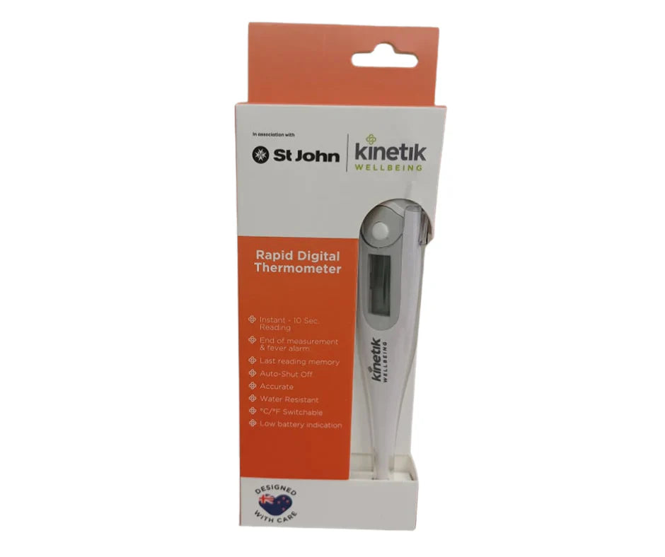 The Kinetik Wellbeing Digital Oral Thermometer offers fast, safe and reliable temperature readings, to accurately measure temperature to within ±0.1°C. An audible beep signals the completed measuring process once peak temperatures are reached.